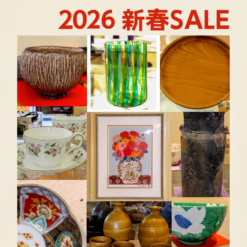 新年あけましておめでとうございます旧年中はひとかたならぬご愛顧賜りありがとうございます本年もどうぞよろしくお願い申し上げます🎍【新春初売りセールのおしらせ】日常使いの器や、、ガラス、作家工芸、絵画、茶道具など、一部商品を除き店内一掃セールを行います。お近くにお越しの節はどうぞお立ち寄りくださいませ。期間:元日~1/15(木) 10:30~17:30期間中無休